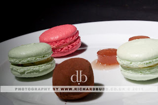 Pistachio macaroons with saffron butter cream; Rosewater and raspberry macaroons; Rhubarb and hibiscus fruit pastille; Salted Dulce de Leche milk chocolate truffle